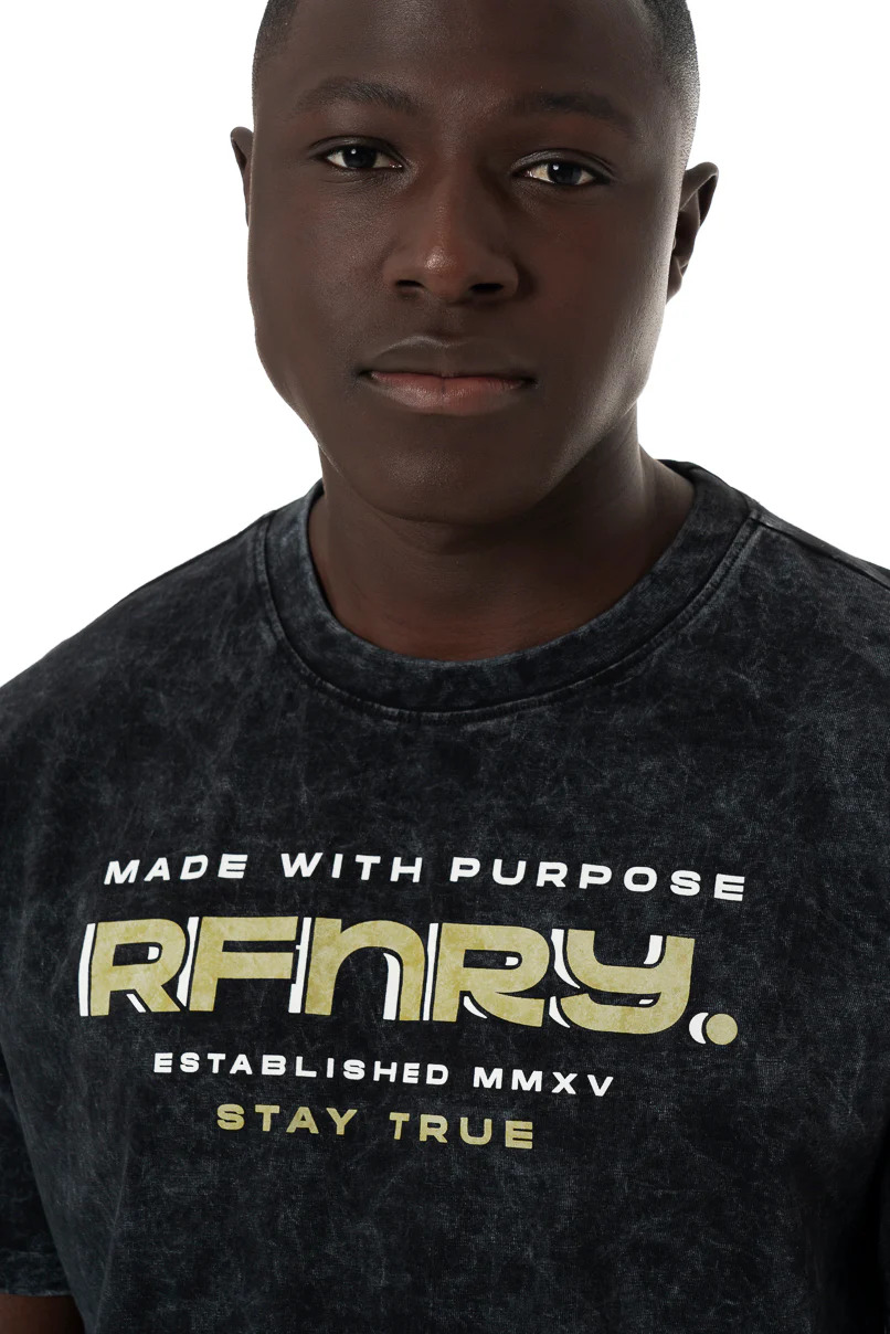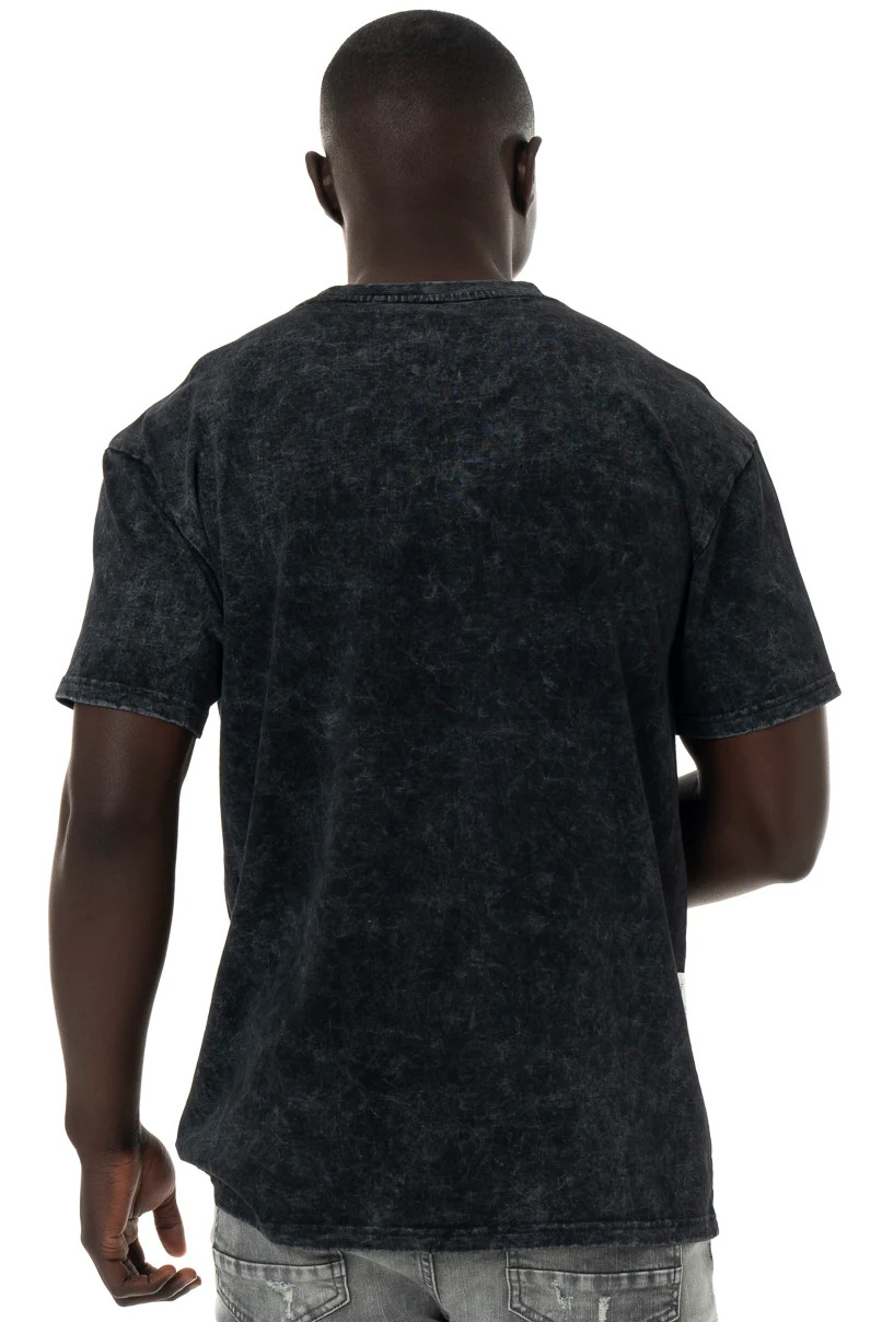 Black dirty dye crew neck t-shirt with branded chest print